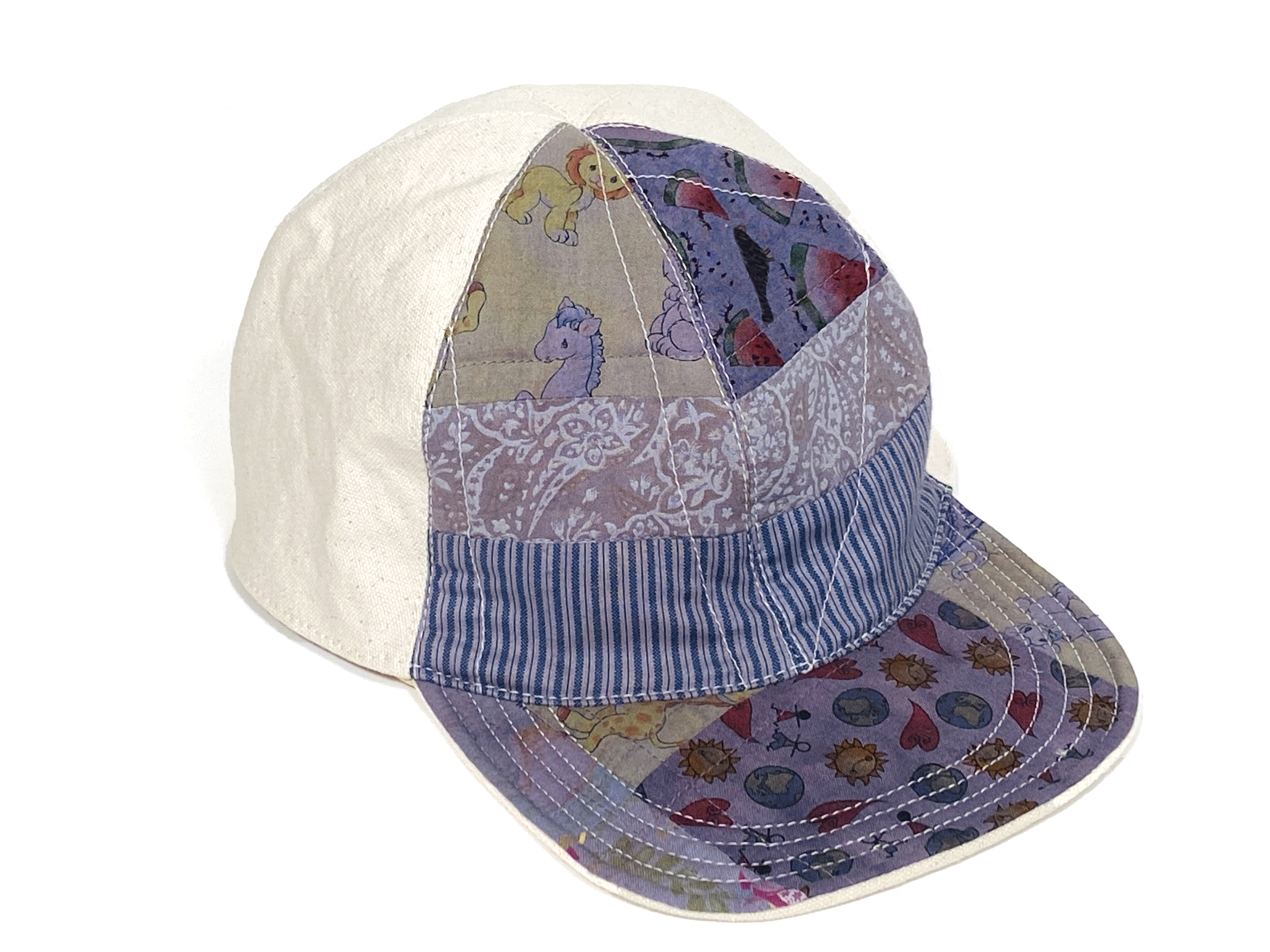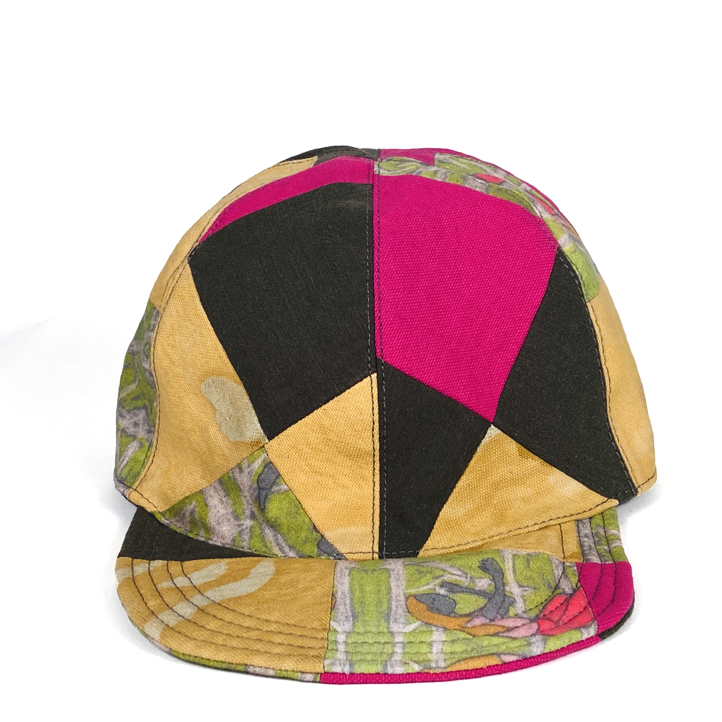 Hand-pieced crown and brim. Fully lined with adjustable vinyl strap. Wash cold and air dry flat. Wash cold and air dry flat.