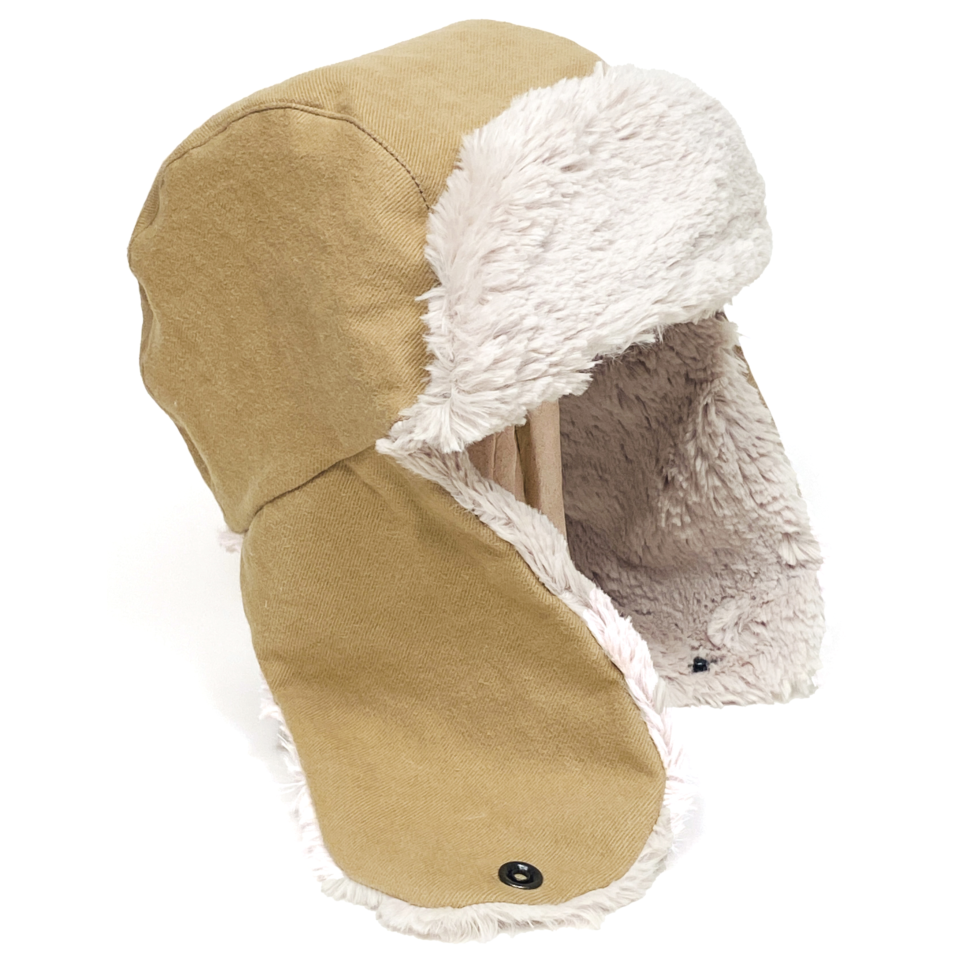 Heavy duty snap on ear flaps for easy adjustment and signature Aitis soft brim.